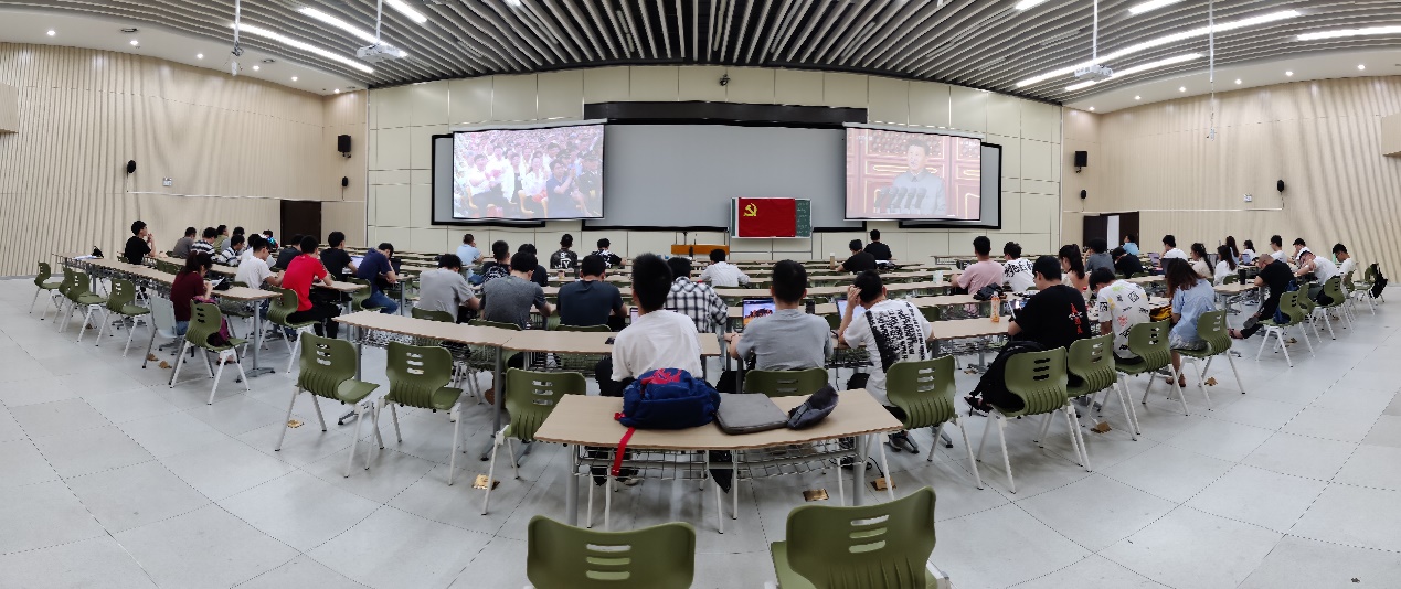 在高新校区,2020级的研究生党员和积极分子们齐聚一堂,观看庆祝大会直播盛况,聆听习近平总书记的重要讲话。