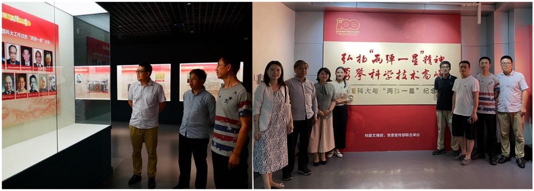“弘扬‘两弹一星’精神,勇攀科学技术高峰——中国科大与‘两弹一星’纪念展”分为“伟大的‘两弹一星’精神”“中国科大与‘两弹一星’”两大版块,用文字、图片、视频、实物等形式,全方位地展现了11位在中国科大工作过的“两弹一星”元勋们的爱国精神、英雄事迹和感人故事。纪念展陈列了收集的上百件“两弹一星”相关的展品、纪念品,以及参与此项重大事件中杰出科学家的简介。通过这些实物和简介,展现了当时科研环境的艰难、物质条件的困苦,但也是在物质技术条件都十分薄弱的基础上,老一辈科技工作者怀着对党、国家和人民强烈的热爱之情,无私奉献、自力更生、艰苦奋斗,实现了人类科技史和文明史上的壮举,铸就了“热爱祖国、无私奉献,自力更生、艰苦奋斗,大力协同、勇于登攀”的“两弹一星”精神,激励和鼓舞了几代人,是中华民族的宝贵精神财富。