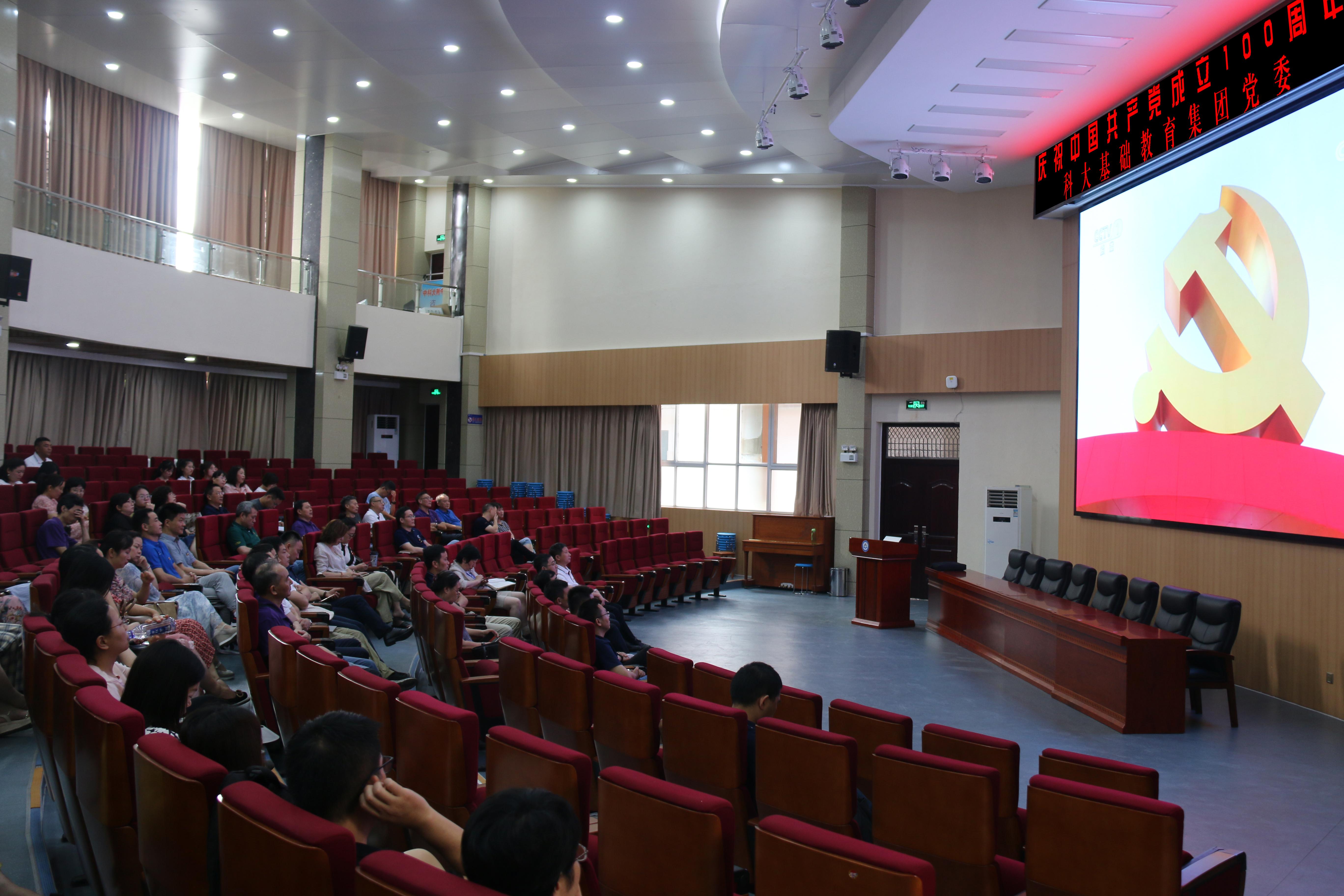 奋斗百年路,启航新征程。庆祝中国共产党成立100周年大会于7月1日上午8时在北京天安门广场隆重举行。科大基础教育集团领导班子成员、科大附中党总支及集团机关党支部全体党员和入党积极分子在科大附中报告厅集中收看了大会盛况,幼儿园直属党支部在东区幼儿园同步组织了收看活动。