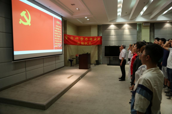 出征仪式上,全体出征队员与全院共产党员一起,认真听取了朱长飞副校长的《传承革命精神执着攻关创新》党史学习教育专题党课,还举行了入党誓词宣誓、授队旗和赠野外应急医疗救援包仪式。朱长飞带领全体党员重温入党誓词,“墨子号”量子科学实验卫星系统总师彭承志教授为出征队员授队旗,总支委员、副院长吕冰涛为出征队员赠野外应急救援包。