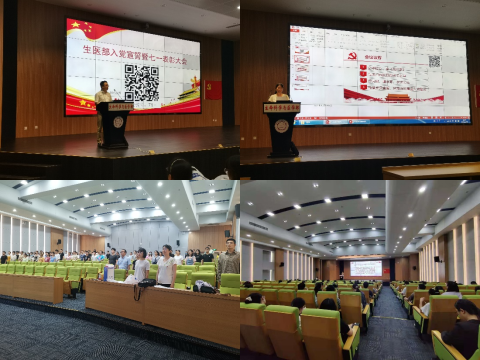 6月30日下午,生命科学与医学部党委在生命科学学院一楼学术报告厅举行“生医部预备党员入党宣誓暨七一表彰仪式”。生医部党委副书记张隆华、生医部党委宣传委员李旭、生医部团委副书记付露露和生医部全体预备党员、转正一年内的新党员、以及生医部“两优一先”获奖代表参加仪式。仪式由李旭主持。