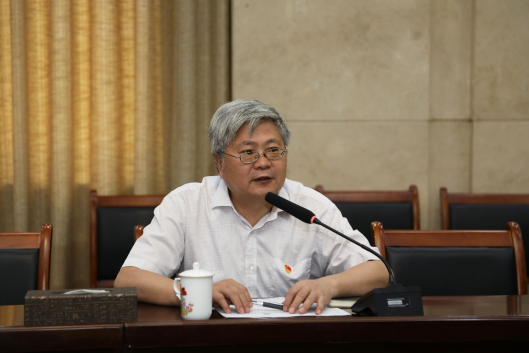 参观结束后,与会人员来到安徽博物院会议室继续召开机关党委理论中心组集中学习暨党支部书记会议。会议首先集中学习习近平总书记在庆祝中国共产党成立100周年大会上的重要讲话,这是机关党委第二次深入学习习近平总书记“七一”重要讲话精神。机关党委常务副书记王伟通报了机关上半年党建工作情况,他对各支部“三会一课”、主题党日的开展情况和存在的主要问题进行了分析总结,同时也提出了机关党委下一步努力方向和工作举措。