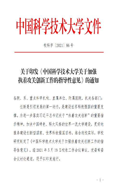 今年3月份,科研部在前期多部门调研、意见整理的基础上,形成《中国科学技术大学关于加强执着攻关创新工作的指导性意见(征求意见稿)》,在学校主页公布并向全校各部门、学院(系)、科研机构发邮件,向全校征求意见。5月7日,在学校召开的“潜心立德树人 执着攻关创新”工作推进会上,进一步对《中国科学技术大学关于加强执着攻关创新工作的指导性意见(征求意见稿)》征求意见。5月19日,校长工作会议审议、党委常委会议讨论通过了《中国科学技术大学关于加强执着攻关创新工作的指导性意见》,这对进一步落实习近平总书记关于“执着攻关创新”的重要指示精神,加快中国特色、科大风格的世界一流大学建设,更好地服务建设创新型国家、世界科技强国目标具有重要指导意义。科研部党支部要将做好基础性和战略性工作、完善创新体系、促进成果转化、营造良好学术生态等作为执着攻关创新工作的重要任务,并联合学校相关部门提供构建与攻关创新需求相适应的资源和服务支撑保障体系,激发创新活力。