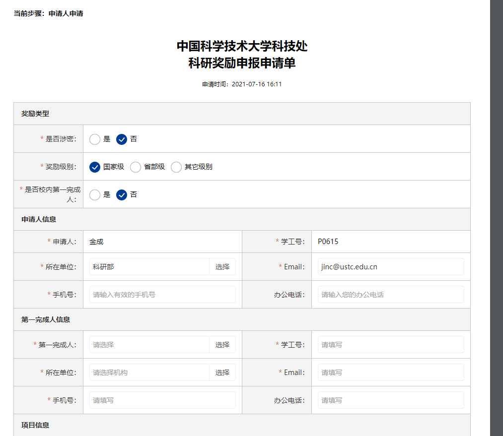 科研奖励申报申请单