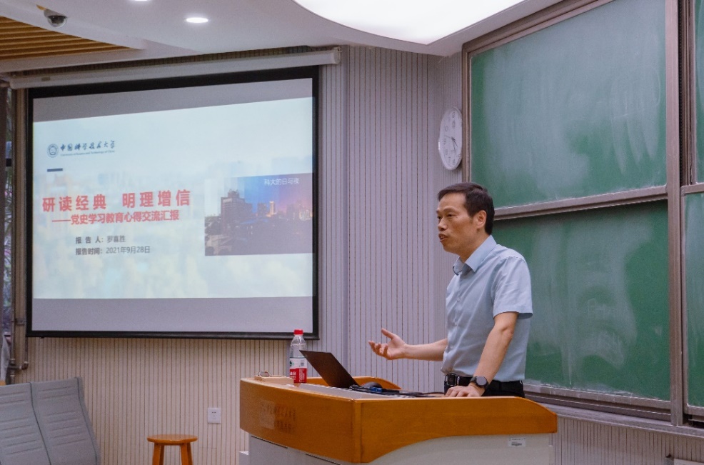 刘明侯在总结发言中感谢罗喜胜副校长为学院师生讲授了一堂“固本强基”的生动党课,希望党员同志们在党史学习教育中用实际行动去“读原著、悟原理”,认真思考马克思主义为什么是我党指导思想的源头,深入领会其实质内涵,并用以指导我们的工作和学习。他还对下半年党史学习教育“我为师生办实事”、“传承科学家精神”学习实践活动做了动员和部署,要求各基层党组织继续加强支部的规范化、标准化建设,密切联系群众,积极营造浓厚的学习氛围。