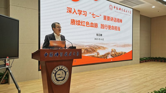 校党委常委、副校长杜江峰作学习贯彻习近平总书记“七一”重要讲话精神宣讲报告