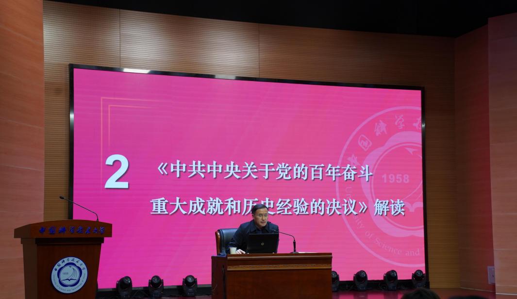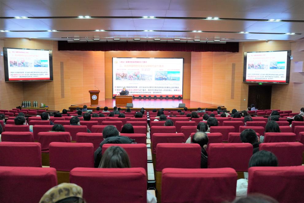 为深入学习贯彻党的十九届六中全会精神,12月30日下午,校党委副书记、纪委书记毕金初在东区水上报告厅作了题为《百年大党再出发,自我革命促辉煌》的报告。宣讲会由管理学院党委书记古继宝主持,管理学院、图书馆、网络信息中心、档案文博院、纪委办监察处、巡察办等单位的党员领导干部和师生代表共同聆听了报告会。