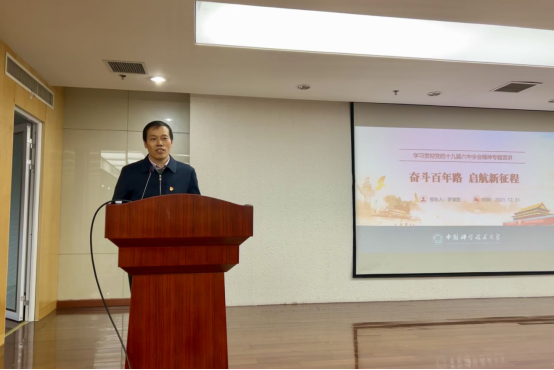 2021年12月31日上午,党委常委、副校长罗喜胜在西区科技实验楼报告厅以“奋斗百年路 启航新征程”为题,作学习贯彻党的十九届六中全会精神宣讲,来自核科学技术学院、国家同步辐射实验室、合肥微尺度物质科学国家研究中心、火灾科学国家重点实验室的师生代表200余人现场聆听了报告。宣讲会由国家同步辐射实验室(核科学技术学院)党委书记李良彬主持。