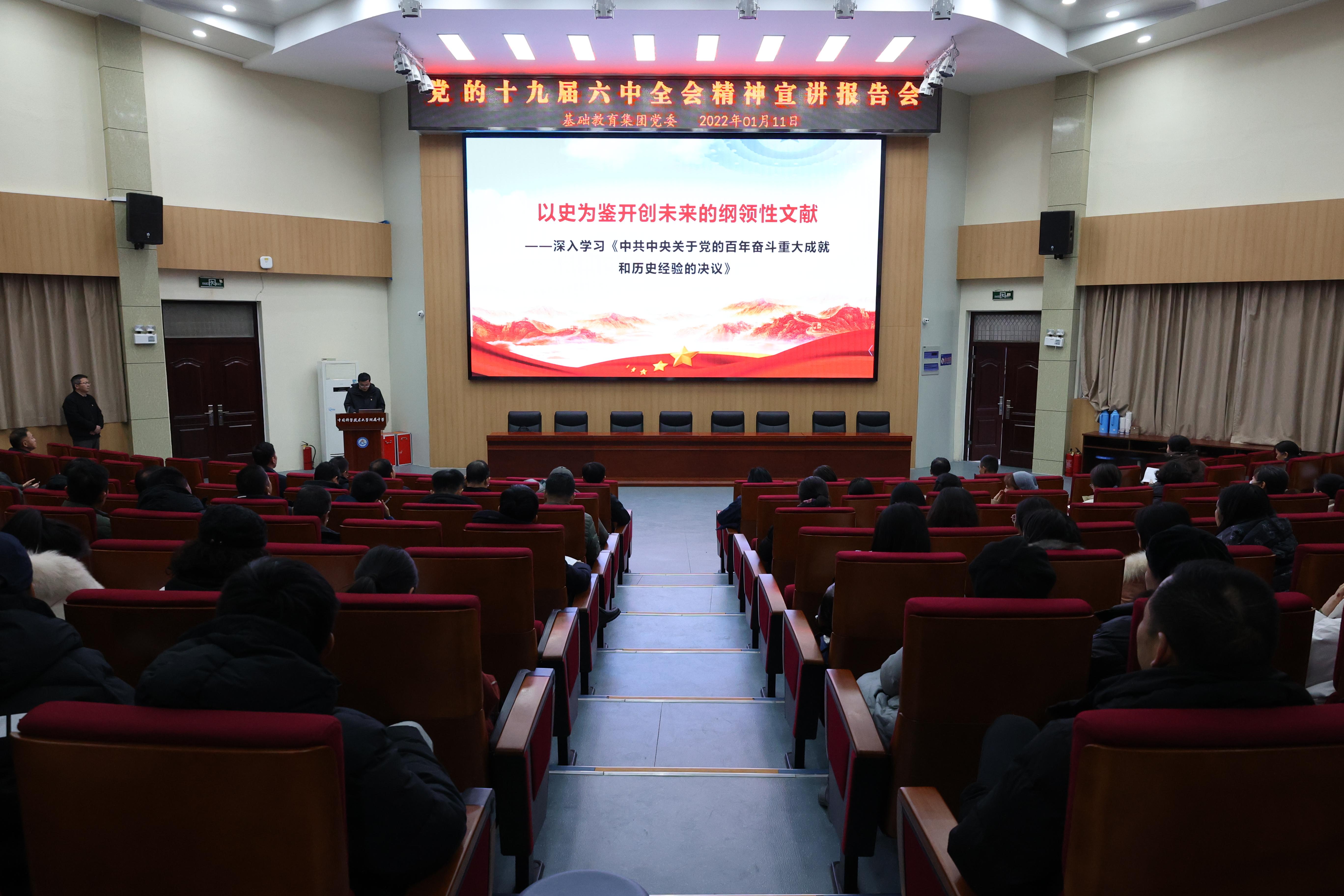 马运生指出,宣讲报告从各个角度解读了党的十九届六中全会精神,这对于基础教育集团全体师生全面深入地领会全会精神,进一步巩固党史学习教育的成果,有着重要的指导意义。马运生强调,希望集团全体教职员工,特别是党员同志,认真深入地学习党的十九届六中全会精神,更加紧密地团结在以习近平同志为核心的党中央周围,弘扬伟大建党精神,扎实做好教育教学工作,为党育人,为国育才,为实现第二个百年奋斗目标、实现中华民族伟大复兴作出新的更大贡献。