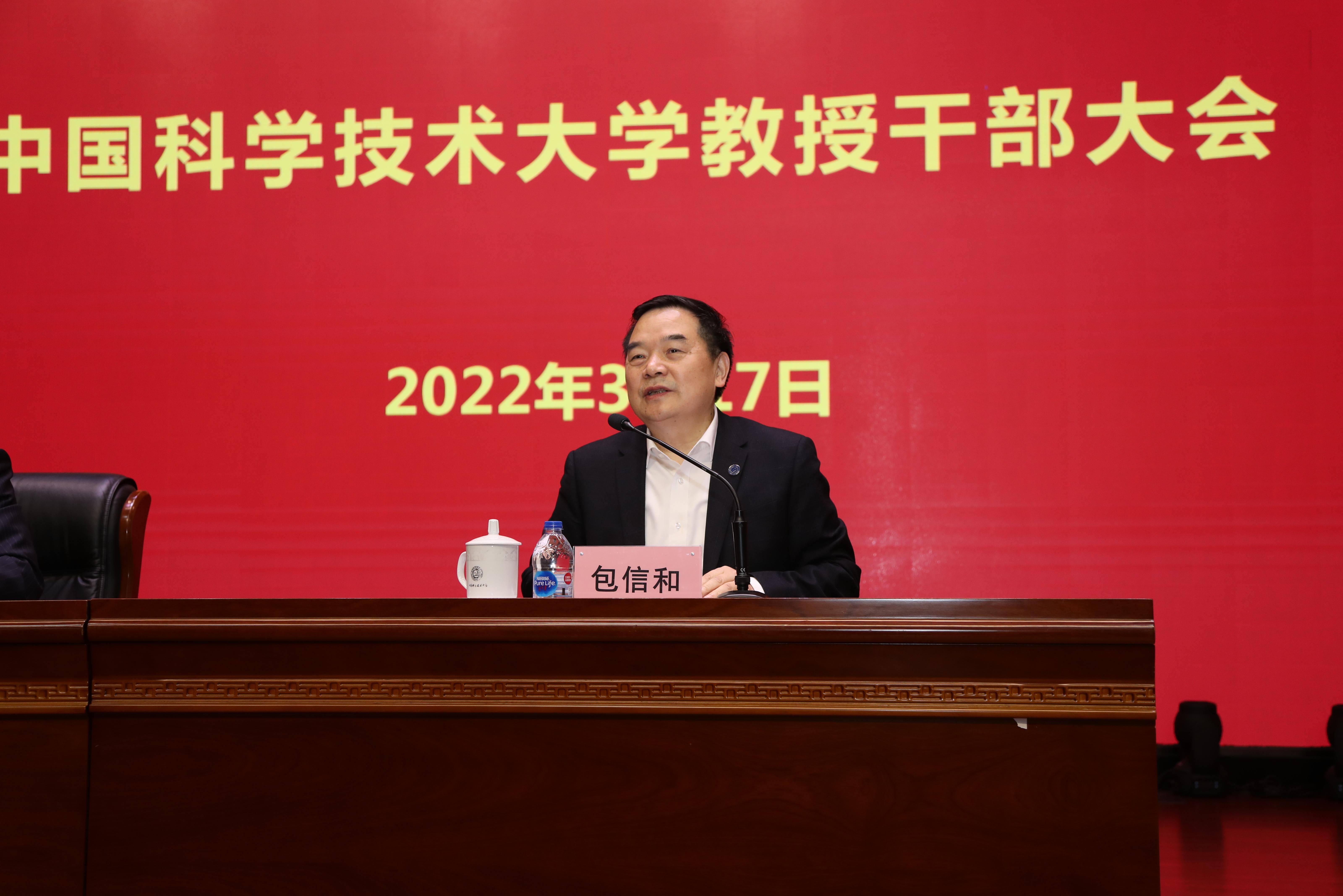 包信和指出,两会期间,习近平总书记发表了重要讲话,就统筹抓好疫情防控和经济社会发展、切实扛起粮食安全这个国之大者的政治责任、巩固中华民族共同体思想基础、做好碳达峰碳中和工作、深入开展党史学习教育、推动全面从严治党向纵深发展、依法治军等提出明确要求,为未来发展指明了方向。中国科大要更加紧密地团结在以习近平同志为核心的党中央周围,按照中央决策部署及省委工作要求,抓紧抓好两会精神的学习宣传和贯彻落实,在新时代的赶考路上,加快建设中国特色、科大风格的世界一流大学,为深入推动安徽高质量发展、跨越式发展贡献力量,以优异成绩迎接党的二十大胜利召开。