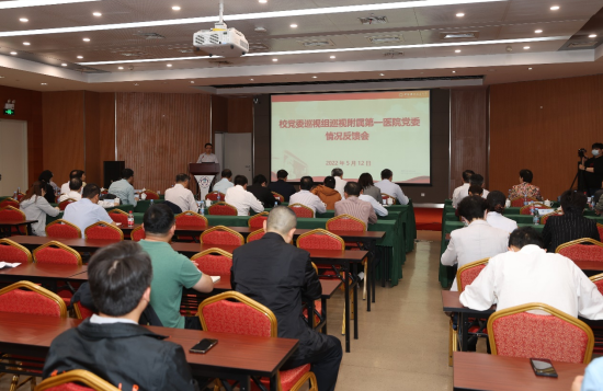 会上,附属医院执行院长、党委副书记严光对照《立行立改问题清单》逐条报告有关事项整改情况。根据疫情防控要求,附属医院各党总支书记、临床医技科室负责人、护士长、分院区领导班子成员及内设部门负责人、附设机构负责人、部分医护人员代表等线上参加了反馈大会。