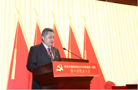 院党委书记刘连新代表第七届党委会向大会作主题为《践行初心使命,砥砺协同创新,奋力建设科大风格、人民满意的一流医院》的工作报告,并致闭幕词。
