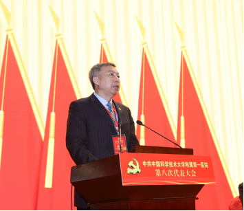 中国科学技术大学党委书记舒歌群,安徽省卫生健康委员会党组书记刘同柱,安徽省委教育工委委员、省教育厅副厅长储常连到会讲话。大学党委常务副书记、党委组织部部长蒋一,党委常委、副校长杜江峰,党委委员、校长助理薛天,党委组织部常务副部长申成龙,省卫生健康委人事处处长李皓、卫生健康行业党建工作指导处处长计承县出席大会。来自全院133个党支部的189位党员代表参加大会,共商医院发展大计。医院历届老领导、名老专家、省政协委员、民主党派医院基层组织负责人、医联体院长、驻村工作队队长列席或作为特邀代表参加大会。