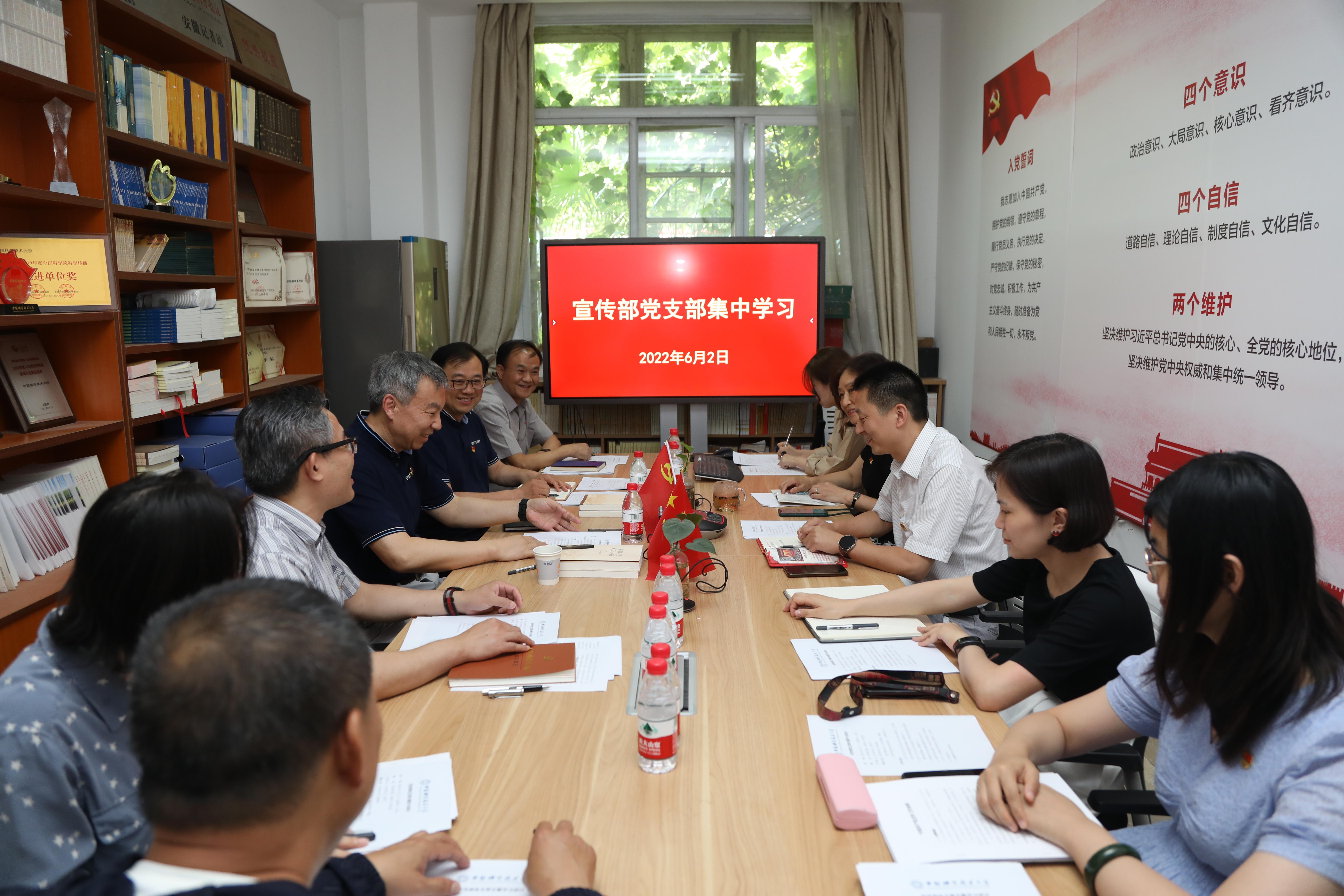 6月2日下午,宣传部党支部在宣传部策划室举行专题学习研讨会,集中学习习近平总书记在中共中央政治局第39次集体学习时的重要讲话精神,学习习近平总书记给南京大学留学归国青年学者的重要回信精神,学习《中国共产党宣传工作条例》和《中国共产党宣传工作简史》。校党委书记舒歌群参加会议,校党委副书记、党委宣传部部长傅尧以普通党员身份参加会议,支部书记朱霁平主持会议。