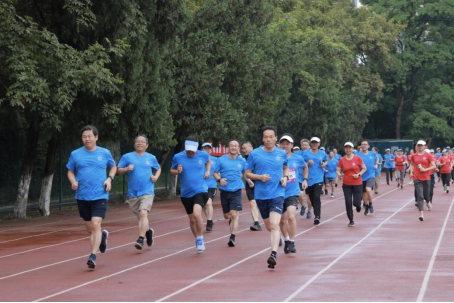 本次接力赛是校工会“喜迎二十大 建功新时代”系列活动之一,全程共6.10公里,特别为响应中国科学院每年6月10日“全民健身日”设置。周丛照为领航组开跑仪式鸣枪,领航组由校领导和各学院、机关部处以及直属单位党政领导组成。