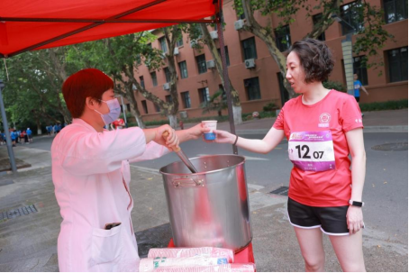 医疗保障人员为参赛者提供饮食服务集团准备的姜汤