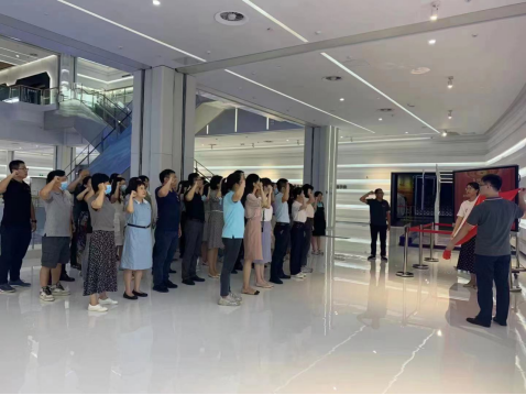 参观结束后,机关党委副书记唐宁领誓,新党员进行了入党宣誓,老党员重温了入党誓词。全体党员面对党旗肃立,举起右拳庄严宣誓,铿锵有力的声音久久回响。