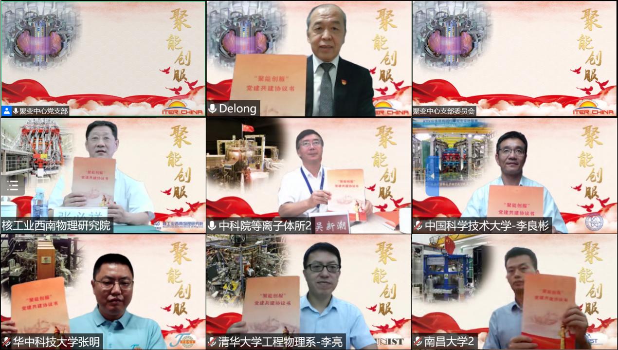 2022年7月28日下午,核科学技术学院等离子体物理与聚变工程系教工党支部开展“建功新时代、喜迎二十大”主题党日活动,与中国国际核聚变能源计划执行中心党支部以及五所核聚变领域的科研院所或高校院系党委联合开展“聚能创服”党建共建签约活动,活动以线上方式开展。中国国际核聚变能源计划执行中心党支部书记、主任罗德隆,核科学技术学院党委书记李良彬,核科学技术学院党委委员、副院长庄革,核工业西南物理研究院党委书记张必祥,中国科学院等离子体物理研究所党委书记吴新潮,华中科技大学电气与电子工程学院党委书记张明,清华大学工程物理系党委副书记李亮,南昌大学物理与材料学院党委书记王涵林出席了签约仪式。核科学技术学院等离子体物理与聚变工程系教工党支部全体党员、核科学技术学院兰涛副教授及6个单位的相关基层党组织等参加了本次活动。