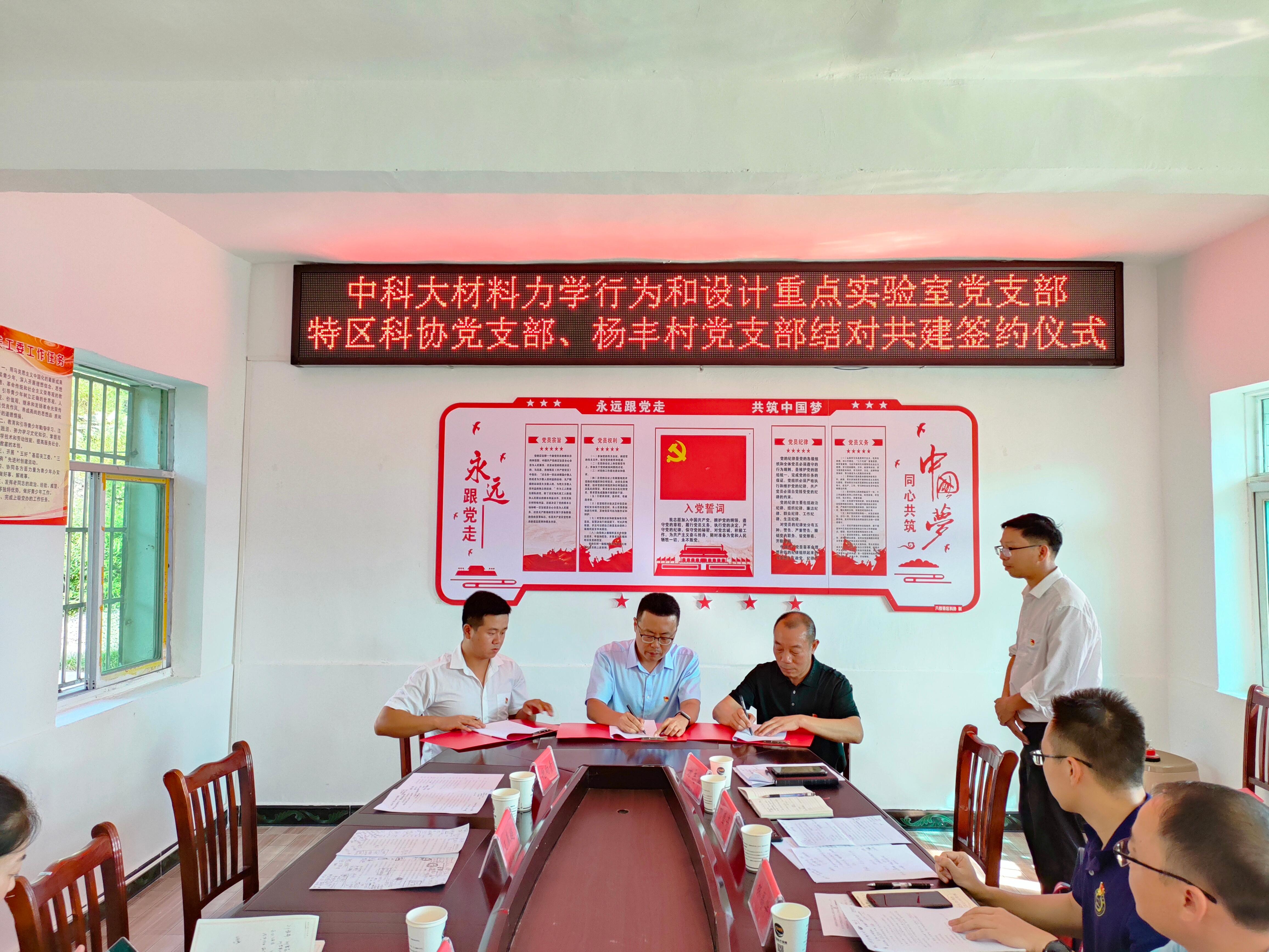 12日下午,中科院材料力学行为和设计重点实验室党支部、六枝特区科协党支部、杨丰村党支部结对共建主题党日暨签约仪式在六枝特区银壶街道杨丰村支部活动室进行。本次活动主题为“党建引领支部共建、科技助力乡村振兴”,六枝特区银壶街道党工委书记张绪鸿、副书记龚德芳,杨丰村支部书记杨厚顺、驻村第一书记陈阳等同志参加会议,会议由六枝科协主席、支部书记刘盛奇主持。