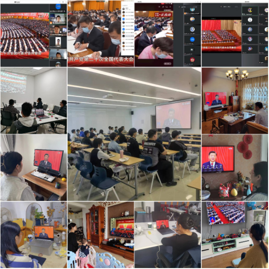 院领导、部门负责人、教工党支部书记和支委、在院学生党支部书记、科研骨干共32人在唯真楼四楼会议室集中收看开幕会