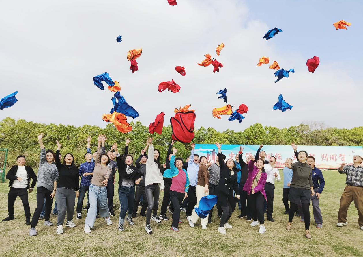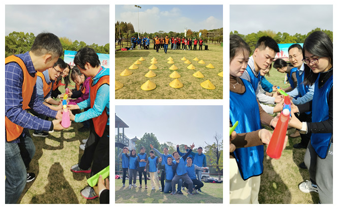 在素质拓展环节,通过简短的破冰游戏,老师们迅速调整状态,快速融入团队,展现了良好的团队意识和综合素质。大家集思广益、群策群力,迅速成立三支队伍,通过选定队长、确定队名、制定口号、展示队形等,营造了浓厚的团队协作氛围。整个拓展训练先后进行了“连连看”“能量传递”“击鼓颠球”等有针对性的项目,老师们全情投入、积极沟通、互助互信、密切合作,顺利完成各项目标任务。整个活动现场气氛紧张而热烈,充分展示了教职工团结友爱、奋勇拼搏的精神风貌和团队凝聚力。