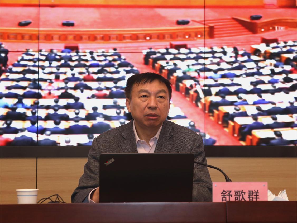 11月24日上午,党的二十大代表、校党委书记、中科院学习贯彻党的二十大精神宣讲团成员、学校学习贯彻党的二十大精神宣讲团团长舒歌群以《高举伟大旗帜 汇聚磅礴力量 用新的伟大奋斗创造新的伟业》为题,面向基层党组织作学习宣传贯彻党的二十大精神宣讲报告,深入解读党的二十大精神。报告会由校党委常务副书记蒋一主持。