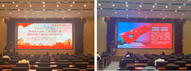 薛天以《高举伟大旗帜汇聚磅礴力量用新的伟大奋斗创造新的伟业》为题,以习近平总书记在党的二十大报告中提出的大会主题为总领,从党的二十大精神的重大意义、党的二十大的主题、过去5年的工作和新时代10年的伟大变革、马克思主义中国化时代化新境界、新时代新征程中国共产党的使命任务、全面建设社会主义现代化国家的目标任务、坚持党的全面领导和全面从严治党重大部署、聚科教人才合力,筑国家强盛之基等八个方面解围绕党的二十大精神的主要内容和丰富内涵进行了全面、系统、深入的解读。薛天结合学校以及微尺度参与的二十大报告“点赞”的科技创新成果,诠释党的二十大在聚科教人才合力、筑国家强盛之基方面的深刻内涵和重要价值,并分享了自己的心得体会。