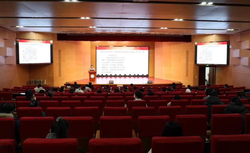 12月16日下午,校党委常委、总会计师、校学习贯彻党的二十大精神宣讲团成员黄素芳在东区水上报告厅作学习宣传贯彻党的二十大精神宣讲报告。公共事务学院、软件学院、财务处共100余名师生聆听了报告。宣讲会由公共事务学院党委书记丁望斌主持。