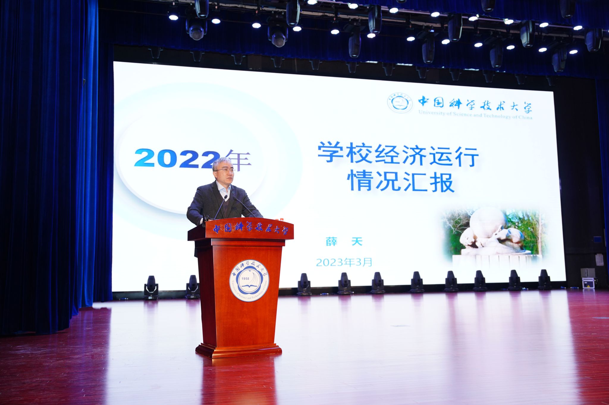 包信和回顾了一年来学校的行政工作。他指出,一年来,学校领导班子加快实施“十四五”规划,稳步推进“双一流”建设,引领学校高质量发展;潜心立德树人,人才自主培养质量稳步提升;深化人才强校战略,国家战略人才力量显著增强;执着攻关创新,国家战略科技力量不断强化;主动服务区域经济发展,积极融入新发展格局;坚持开放办学,国际合作交流取得丰硕成果;加快校园建设,办学育人环境持续改善;坚持依法治校,加快治理体系和治理能力现代化;坚持以人为本,实现学校发展成果由师生共享。