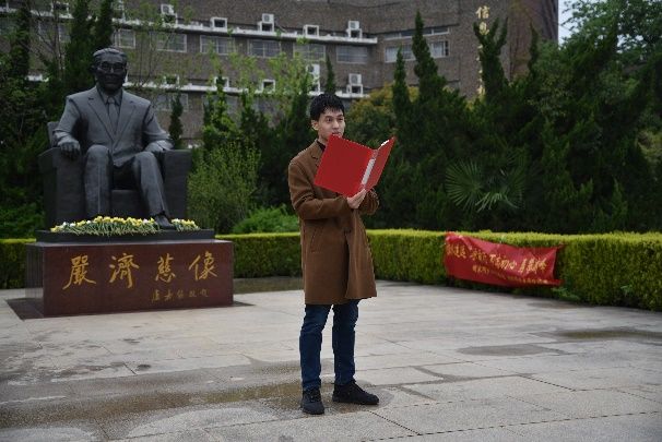 上午九时,蒙蒙细雨,2022级全体同学在严济慈先生塑像前陆续汇集,在核科学与技术学院2022级研究生陶莉的主持下,同学们怀着深切的缅怀和诚挚的敬意,依次向严济慈先生塑像献花,并集体向以严济慈先生为代表的老一辈科学家们致哀一分钟。