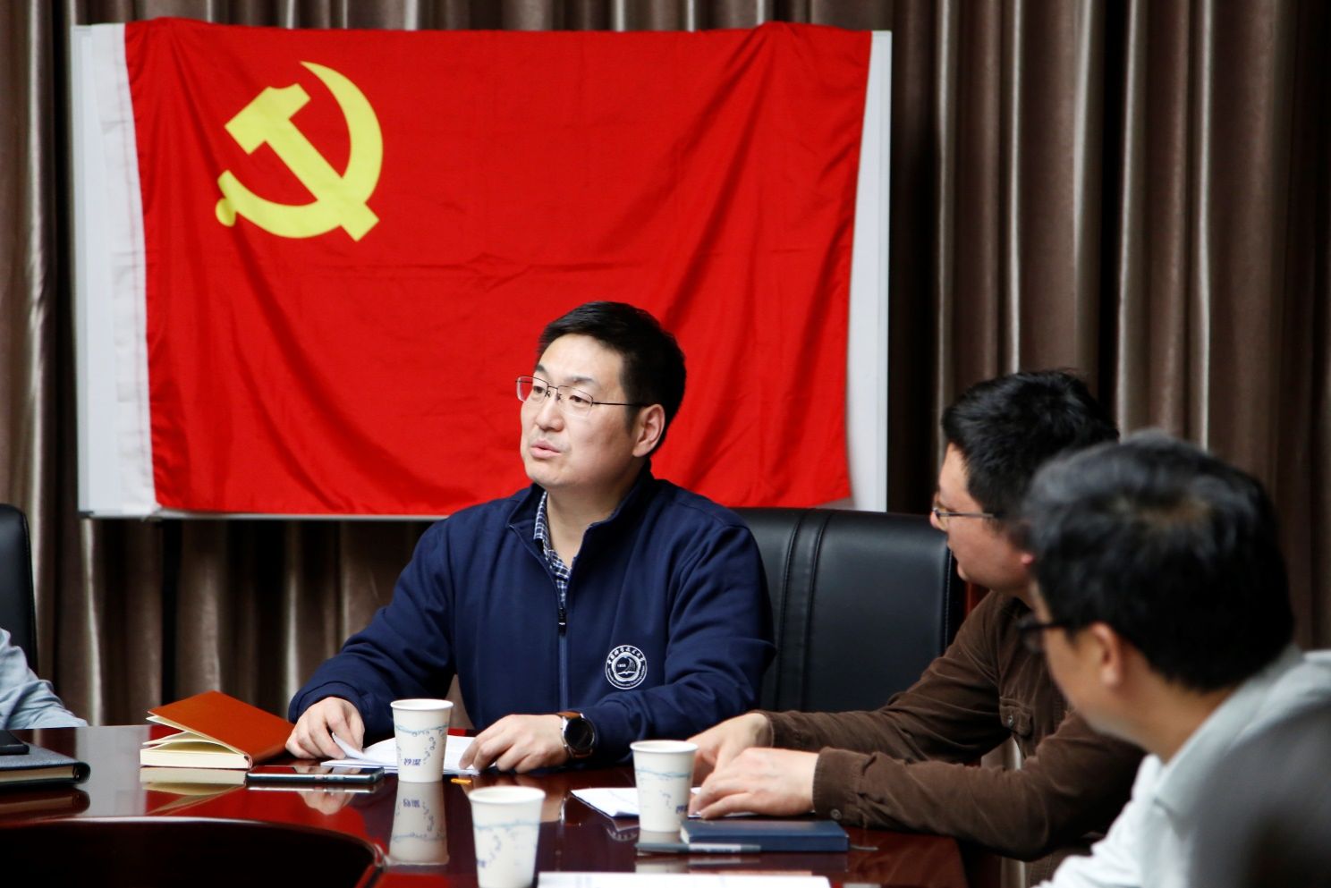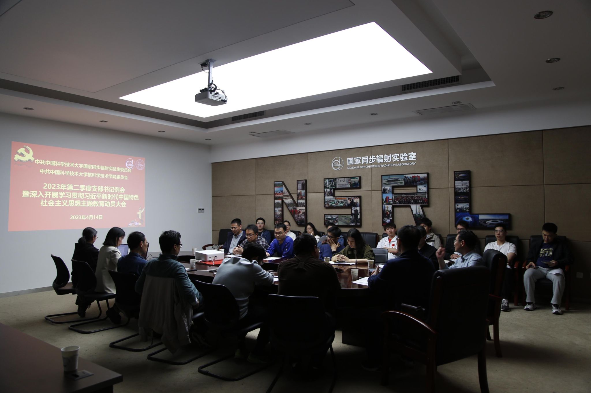 2023年4月14日下午,国家同步辐射实验室党委(核科学技术学院党委)在国家同步辐射实验室环厅会议室召开2023年第二季度支部书记例会暨深入开展学习贯彻习近平新时代中国特色社会主义思想主题教育动员大会。实验室和学院领导班子成员、党委委员、师生党支部书记、师生党员代表等近30人参加会议,实验室党委(学院党委)书记、实验室副主任李良彬主持会议,校第五指导组成员、党委人民武装部副部长、学生工作处副处长刘伟丰列席指导。