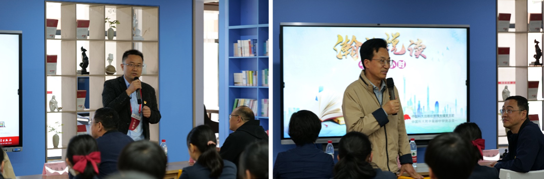 活动伊始,杨全向同学们介绍了中国科大出版社,并表示,出版社和学校在知识文化传播中均扮演着重要角色,本次联合党建活动为同学们创造了一次深入阅读和交流的机会,希望同学们充分利用好学校丰富的图书资源,养成良好的阅读习惯,为未来成长打下坚实基础。蒋家杰分享了一个通过阅读获益匪浅的真实故事,勉励同学们爱读书、多读书、读好书,从图书中收获科学知识、汲取精神力量,努力成长为祖国的栋梁之才,接过新时代科教报国的接力棒。