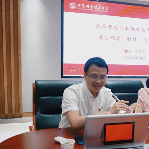 申成龙以《改革开放以来历次党代会报告中关于教育、科技、人才的论述》为题作学习贯彻习近平新时代中国特色社会主义思想主题教育专题党课报告。他从“改革开放以来的历次党代会基本情况”“关于教育和科技问题相关论述的文本对比分析”“深入实施新时代人才强国战略”等方面解读了历次党代会报告中关于教育科技人才的论述,深刻阐述了教育、科技、人才在全面建设社会主义现代化国家中的地位作用,希望广大组织、人事、人才工作者要认真学习贯彻习近平新时代中国特色社会主义思想和党的二十大精神,深刻领悟“两个确立”的决定性意义,增强“四个意识”、坚定“四个自信”、做到“两个维护”,积极践行新时代党的组织路线,激发和释放干部教师干事创业活力和创造力,让新时代人才强国战略在高校落地生根。