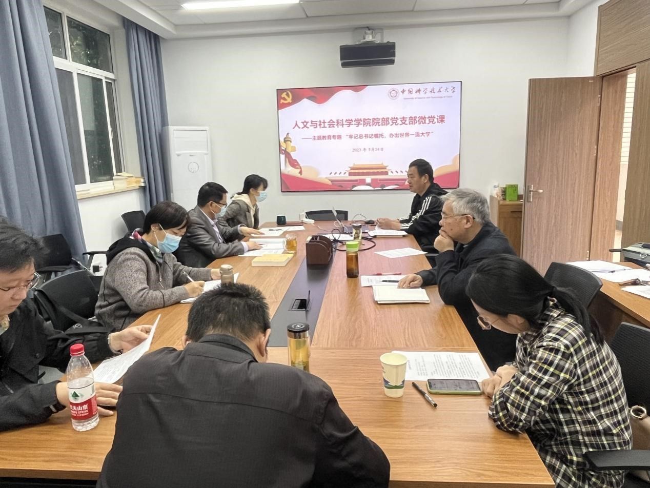 会议进行“牢记习近平总书记嘱托,办出世界一流大学”专题学习。支部书记黄大庆领学习近平总书记三次视察中国科大的重要讲话和系列重要指示精神,认真贯彻落实党的教育方针和党中央关于高校的决策部署,围绕“潜心立德树人、执着攻关创新” 两大核心任务的落实进行深入研讨,增强办出世界一流大学的责任感和使命感。
