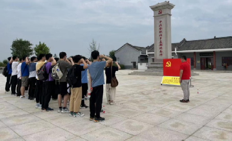 为深入贯彻落实习近平总书记关于红色资源的重要指示精神,用好红色资源,赓续红色血脉,大力弘扬爱国主义精神,推动学习贯彻习近平新时代中国特色社会主义思想主题教育走深走实,进一步提升学院预备党员的党性觉悟和思想政治素质,6月21日上午,化学与材料科学学院党委组织30余名2023年新发展党员前往安徽省爱国主义教育示范基地——中共合肥北乡支部纪念馆开展“赓续红色血脉、奋进新征程”主题教育实践活动暨新发展党员宣誓仪式,院党委副书记周小东、千坤共同参与了活动。