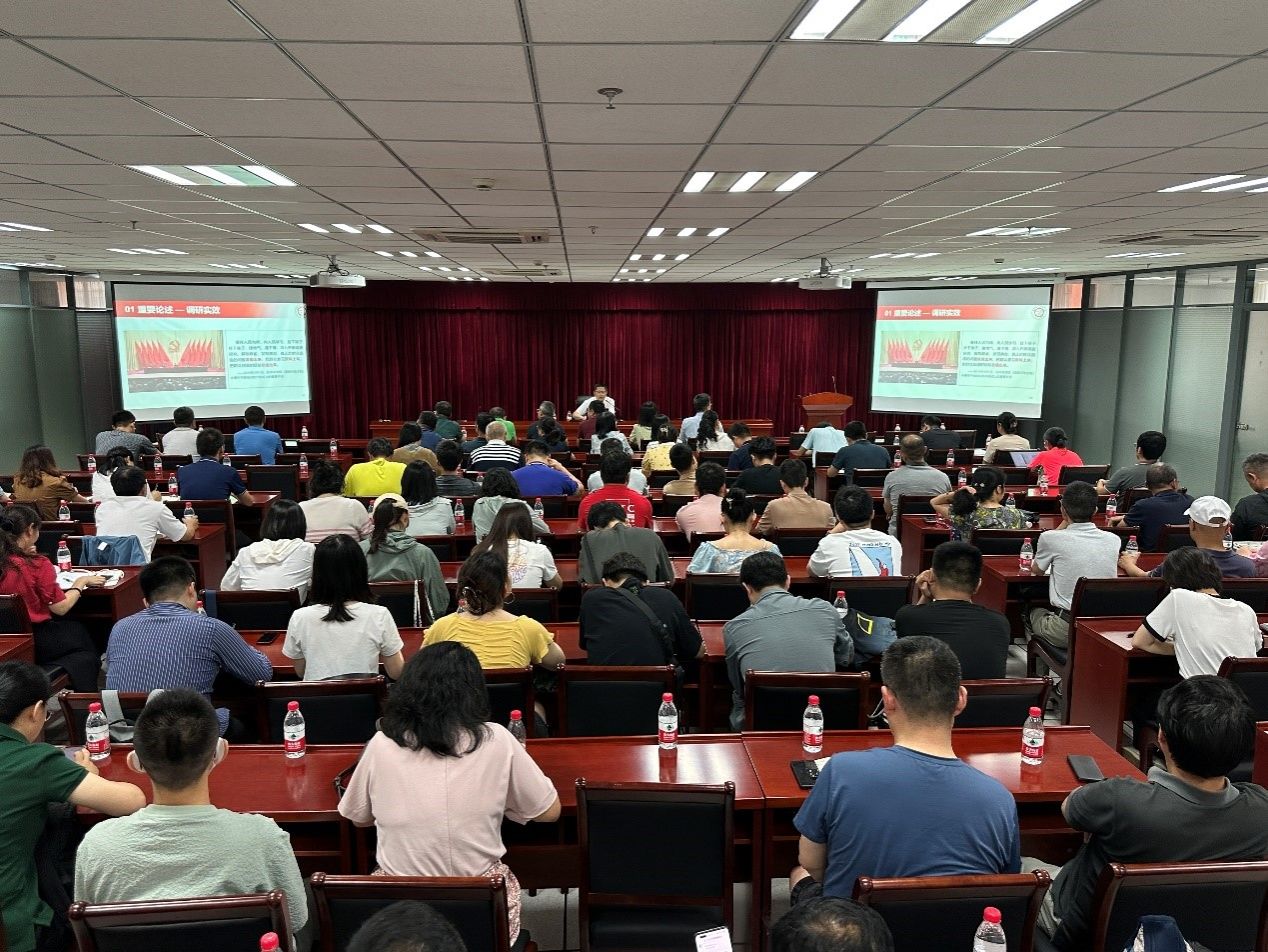 7月4日下午,校党委常委、副校长周丛照在东区新图书馆4楼报告厅讲授学习贯彻习近平新时代中国特色社会主义思想主题教育专题党课,国家同步辐射实验室、核科学技术学院和基础教育集团党员代表以及本科生院、教务处、招生就业处、校工会、辐射防护与环境保护教研室研究生党支部全体党员参加,报告会由招生就业处处长武晓君主持。