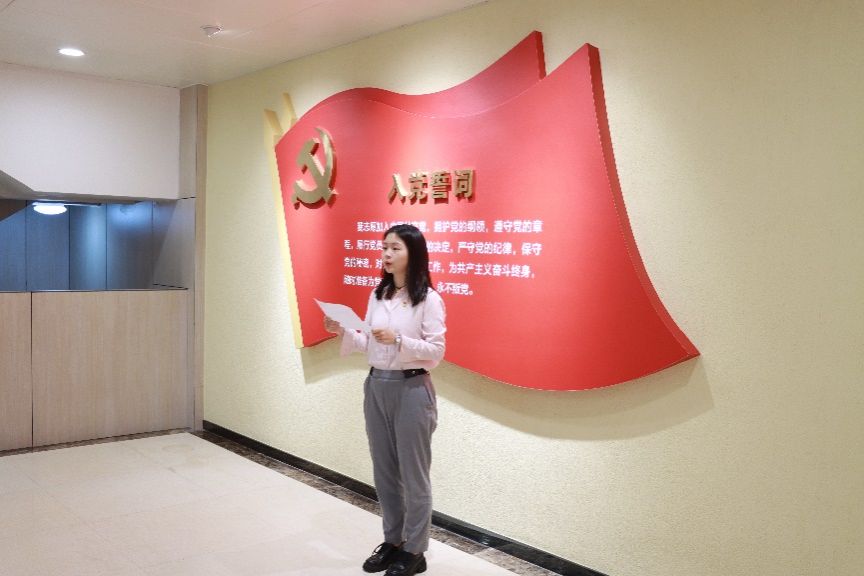 新党员代表赵君怡在发言中感谢党组织的关心、教育与培养。她表示,共产党员不仅是一种称号,更是一种责任、荣誉和使命,要以入党作为人生新的起点,刻苦学习、不断创新,努力完成党组织交给的各项工作任务,积极发挥党员的先锋模范作用,为学院和学校的发展贡献青春力量。