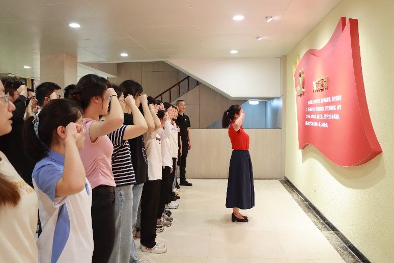 院党委向参加仪式的50余名新党员赠送了一枚党员徽章。在牟玲同志的领誓下,新党员庄严宣誓:“我志愿加入中国共产党,拥护党的纲领,遵守党的章程,履行党员义务,执行党的决定,严守党的纪律,保守党的秘密,对党忠诚,积极工作,为共产主义奋斗终身,随时准备为党和人民牺牲一切,永不叛党。”