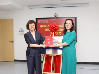 为学习贯彻习近平新时代中国特色社会主义思想,丰富离退休教职工精神文化生活,推动主题教育走深走实,7月18日下午,学校在附属第一医院综合楼七楼东会议室举行中国科学技术大学老年大学附属第一医院分校揭牌仪式,校党委副书记、老年大学校长邓建松,附属第一医院党委书记刘连新共同为分校揭牌。校离退休干部工作处处长、校老年大学常务副校长刘艳等有关方面负责人及教师代表、医院离退党总支各党支部书记、部分学员代表、院老干部处工作人员参加了揭牌仪式。揭牌仪式由附属第一医院党委副书记刘军主持。