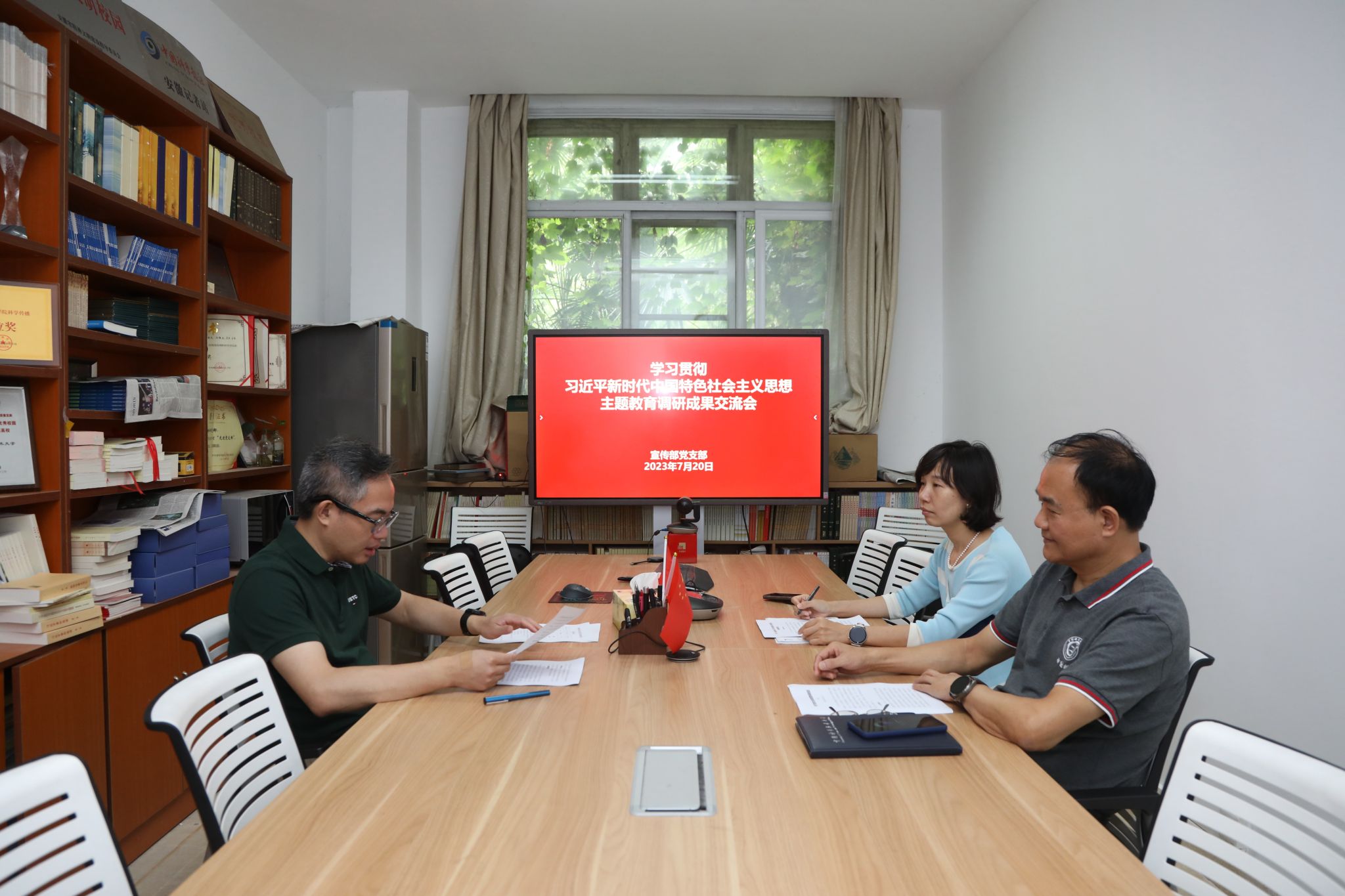 720日,党委宣传部召开学习贯彻习近平新时代中国特色社会主义思想主题教育调研成果交流会。常务副部长、党支部书记朱霁平主持,部门领导班子成员参加会议。