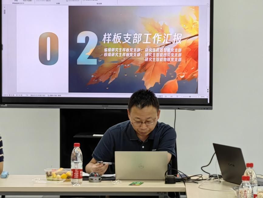 学院有省级研究生样板党支部1个、第二批校级样板党支部2个,会上进行了样板党支部工作经验介绍和交流。研究生机器智能党支部向大家分享了理论学习“轮讲制+读原著”、主题活动“户外运动+实地考察”等活动组织开展的经验;研究生智能感知党支部围绕“运动+党建”的支部品牌特色进行工作展示;研究生智能物联党支部侧重介绍了党团党群融合、党建与业务互相促进的亮点工作。在肯定支部工作的同时,学院党委对于样板支部提出更为严格的要求,指出样板党支部的建设不单是支委的工作,而是党支部全体党员的荣誉,需要全体党员主动参与建设;希望接下来党支部能集思广益,多围绕支部特色开展组织生活。与会党支部书记与样板支部骨干进行了热烈交流,也为后续各支部开展更有特色、形式更丰富的活动提供了诸多参考。