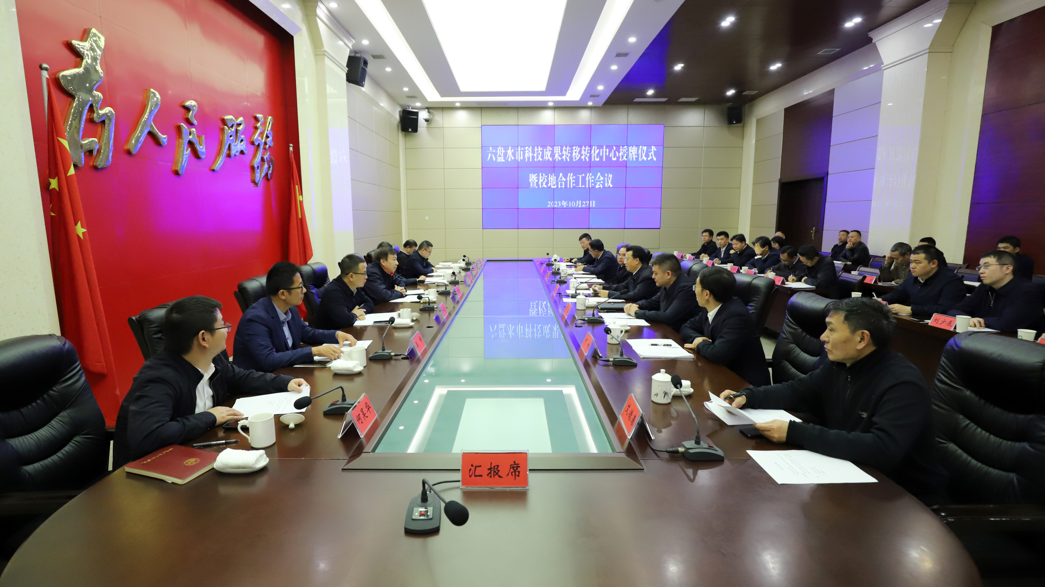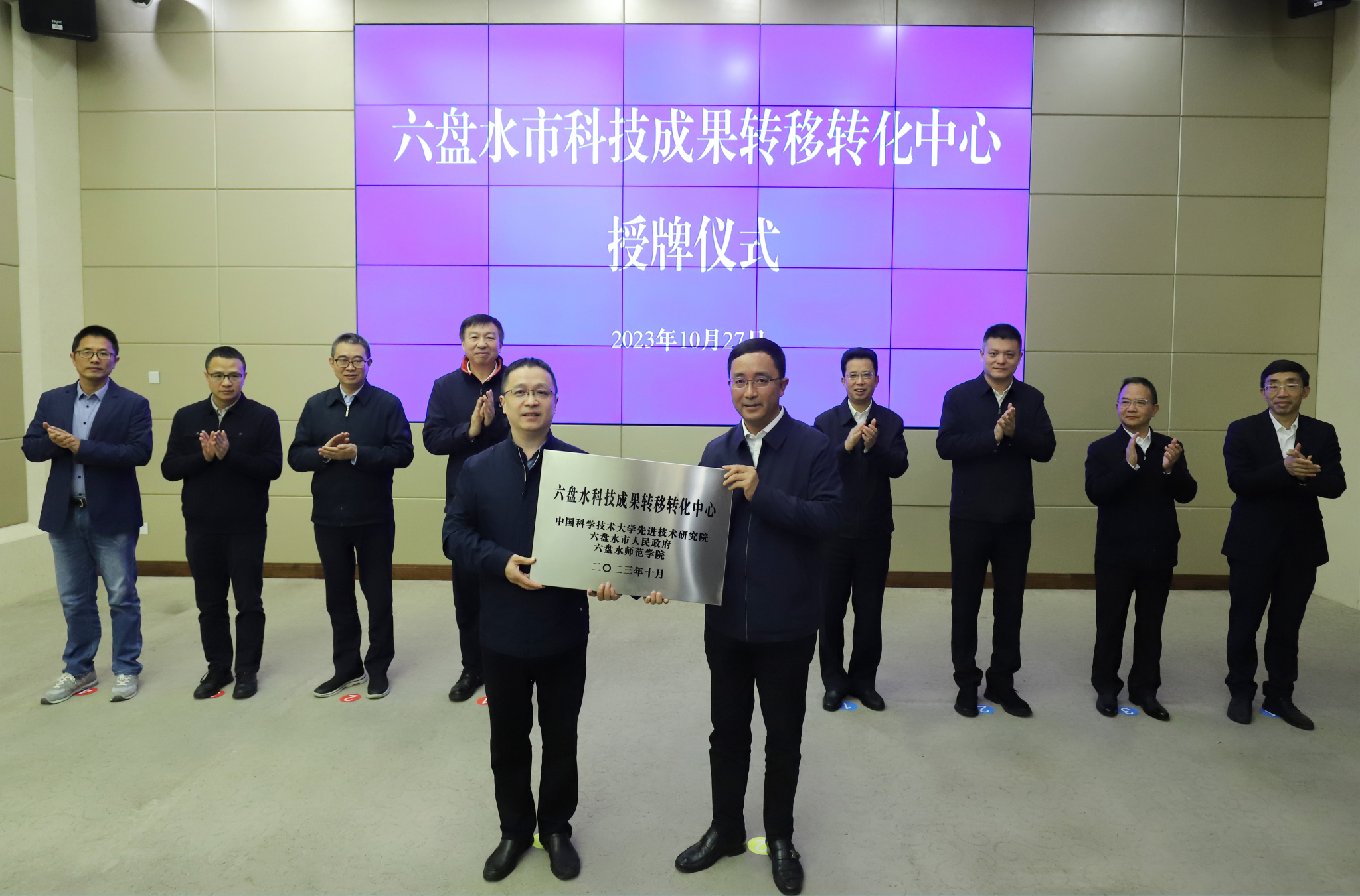 27日上午,舒歌群一行参加六盘水市科技成果转移转化中心授牌仪式暨校地合作工作会议。六盘水市委书记张定超,市委副书记、市长李巍,六盘水师范学院校长何林等参加会议。张定超、李巍分别代表六盘水市委、市政府对舒歌群一行赴六盘水指导定点帮扶、对口支援工作表示热烈欢迎,向中国科大给予六盘水的帮助支持表示感谢。长期以来,中国科大在教育帮扶、科技帮扶、医疗帮扶、人才培养等方面持续发力,助力六盘水打赢脱贫攻坚战,在定点帮扶的基础上,进一步拓展对口支援六盘水师范学院,共建科技成果转移转化中心,推动巩固拓展脱贫攻坚成果同乡村振兴有效衔接取得新的成效。