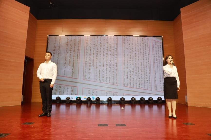 随后,宣讲团四位成员围绕“爱国创造践初心”“清贫奉献为人民”“传承发展谋复兴”三大部分,采取讲述红色故事、情景再现、时空对话等“情景声画”多人组合形式进行立体宣讲,通过舞台艺术和视频形象展示的方式,讲述了革命先烈方志敏的英勇事迹,展现出一位坚韧不拔、情系祖国、有血有肉的革命英雄形象,为在座师生带来一场红色文化精神洗礼。第一篇章“爱国创造践初心”通过讲述方志敏辍学投身革命事业、创建革命根据地、推进根据地建设、保卫苏维埃政权等故事,体现其至诚至真的爱国情怀和开拓进取的创新胆魄。第二篇章“清贫奉献为人民”着重刻画了一身正气、两袖清风、清贫如水、躬耕奉献的方志敏形象,并场景再现了方志敏与妻子的隔空对话,彰显了共产党人大公无私的高尚品德。第三篇章“传承发展谋复兴”则集中展现了方志敏精神在赣东北大地的大力传承和广泛践行,并通过《可爱的中国》集体朗诵激发当代青年建设社会主义现代化强国的信心和决心。