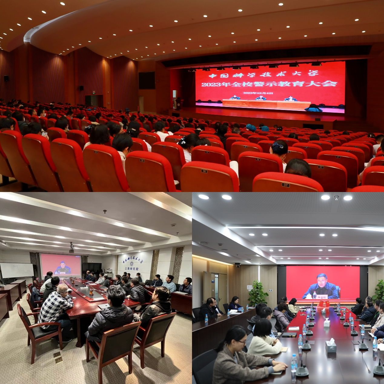 12月4日下午,我校在东区大礼堂召开2023年警示教育大会。校党委书记舒歌群、校长包信和出席会议并讲话,在校校领导在主会场参会。校党委副书记、纪委书记、国家监委派驻监察专员毕金初主持会议并通报警示教育典型案例。