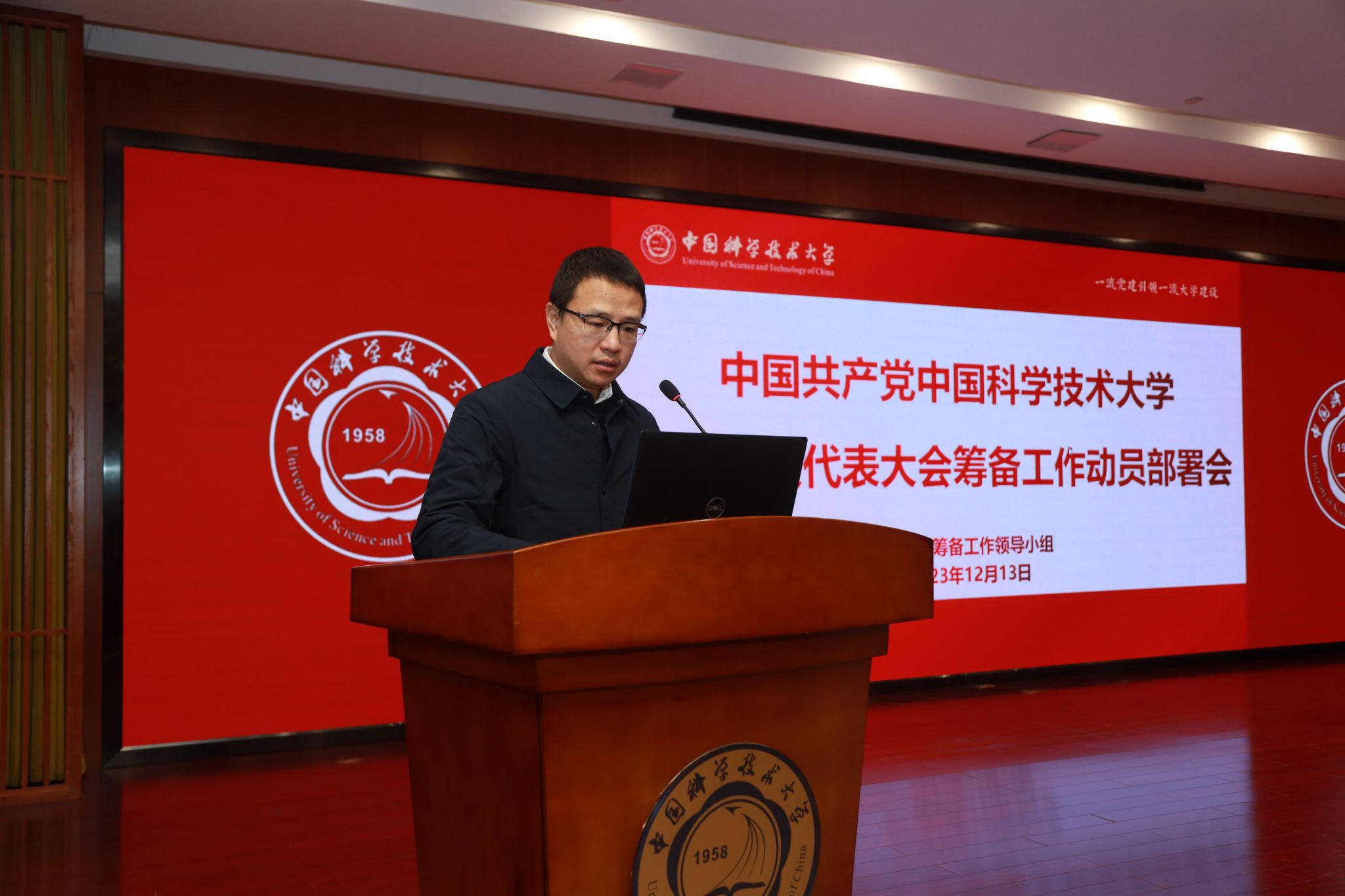 蒋一首先代表校党委宣读中共安徽省委教育工委关于同意召开学校第十三次党代会的批复文件。经校党委研究,报请中组部、安徽省委同意并报告中国科学院党组,学校将于2024年1月下旬召开第十三次党代会。党委组织部常务副部长申成龙代表党代会筹备工作组介绍党代表和两委委员推选工作的具体要求与时间节点。