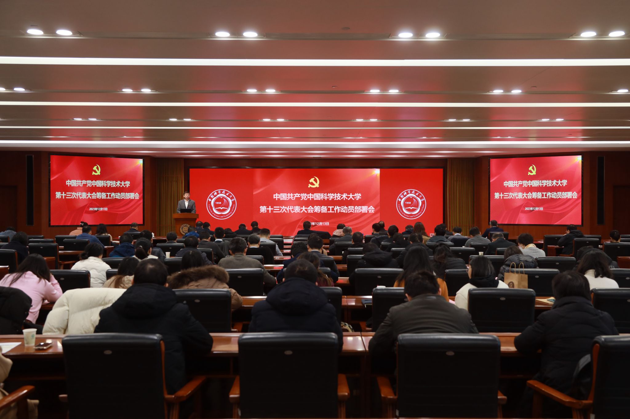 12月13日上午,中国共产党中国科学技术大学第十三次代表大会筹备工作动员部署会在东区师生活动中心五楼报告厅举行。校党委书记舒歌群及在校党员校领导,机关部门主要负责人、各院级党组织负责人,各院级党组织党代会筹备工作联络员,党代会筹备工作组全体人员等参加会议。校党委常务副书记蒋一主持会议。