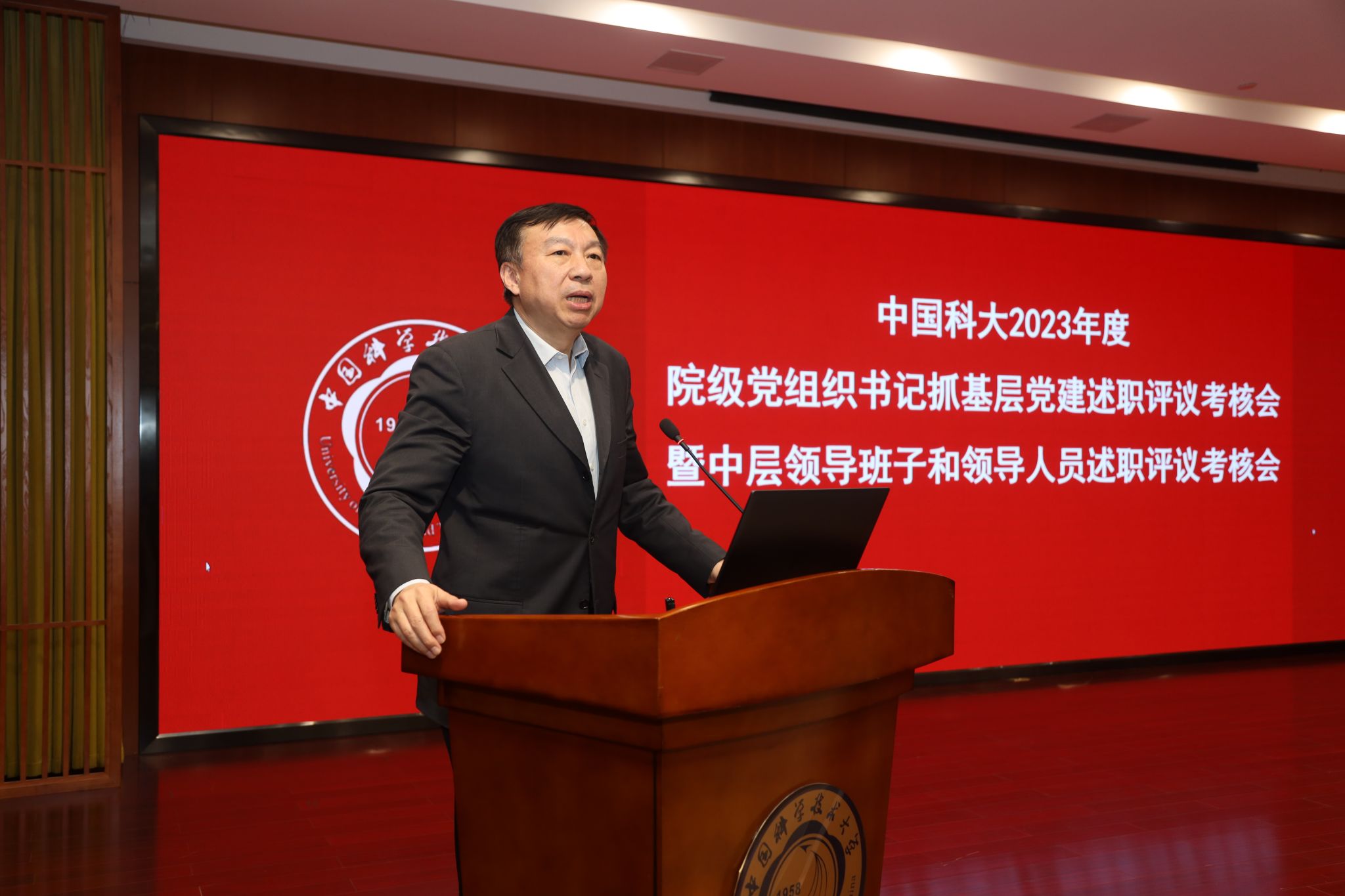 会上,各院级党组织负责人分别进行了现场和书面述职汇报,依次汇报本单位深入学习贯彻习近平新时代中国特色社会主义思想和党的二十大精神经验做法,总结深化“红专工程”、抓基层党建所取得的成效,认真查摆存在问题,提出加强和改进基层党建工作具体措施。各中层班子行政负责人围绕本单位领导班子的政治思想建设、领导能力、工作实绩、党风廉政建设、作风建设,以及存在问题和下一步工作思路等,代表班子分别进行了现场和书面述职汇报。与会评委听取现场述职答辩,审阅书面述职材料,结合日常了解的情况,进行了现场投票。党委书记舒歌群、校长包信和等校领导逐一进行了点评指导,充分肯定了各单位的工作实绩和创新举措,明确指出了存在问题和改进方向,并对下一年度工作提出具体要求。
