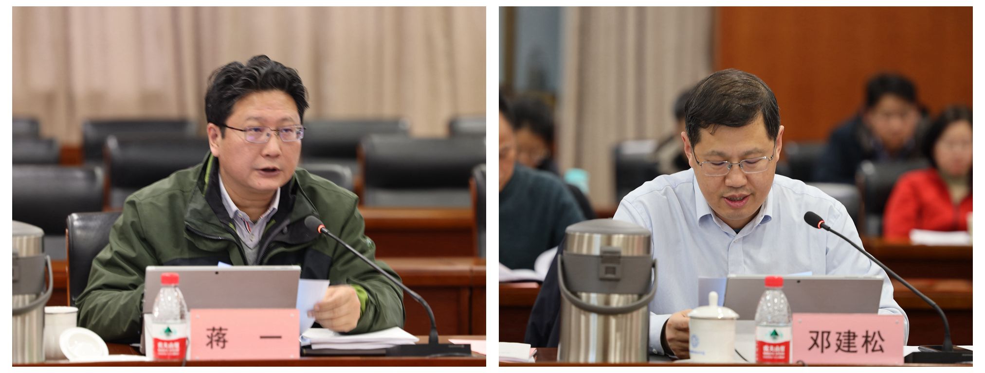 校党委常务副书记蒋一、党委副书记邓建松分别结合实际工作作交流发言。