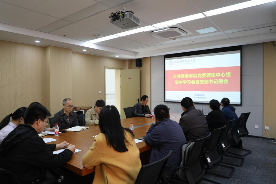 3月26日下午,公共事务学院在南区教学楼609会议室召开党委理论学习中心组集中学习会暨支部书记例会。学院党政领导班子成员、党委委员参加会议,各党支部书记、学院各部门负责人列席会议。会议由党委书记丁望斌主持。