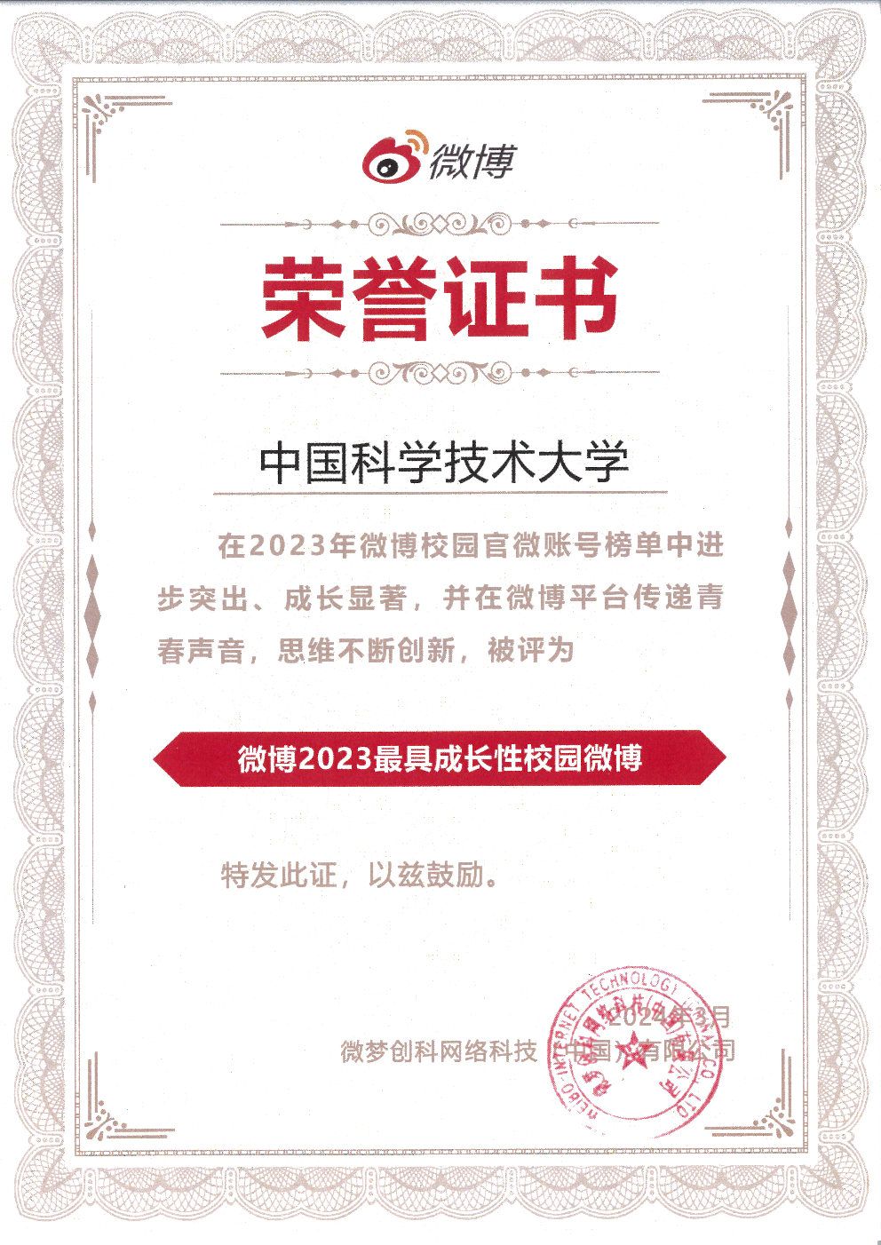 会议期间,还举办了2023微博校园年度盛典,中国科学技术大学官方微博等30所高校获评2023“最具成长性校园微博”,我校党委宣传部姚琼老师获评微博“2023年校园新媒体优秀指导教师”。